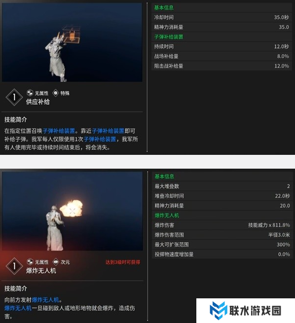 特征:使用补给无人机的辅助。为我军补给子弹的同时,用无人机进行远程攻击并指挥战地。