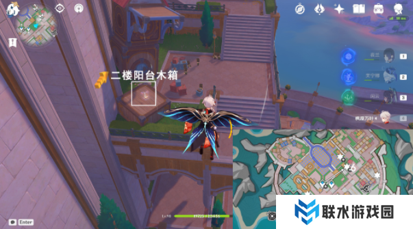 传送星轨王城顶楼锚点,往地图的东北方向下飞,在二楼阳台木箱上拾取。