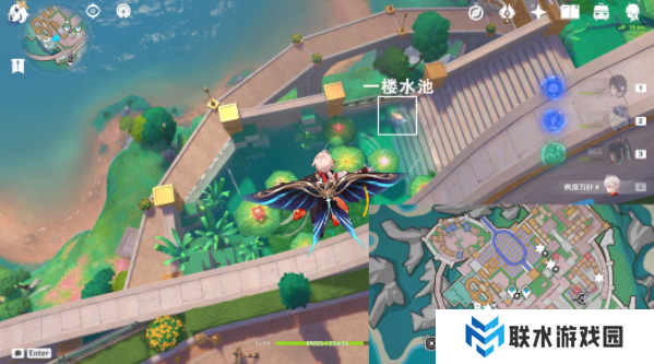 传送星轨王城顶楼锚点,往地图的西南方向下飞,在一楼水池空中拾取。