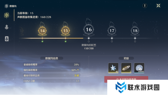 通过在地图上抓声骸提升数据坞等级,来解锁奖励:累计可获得960音声