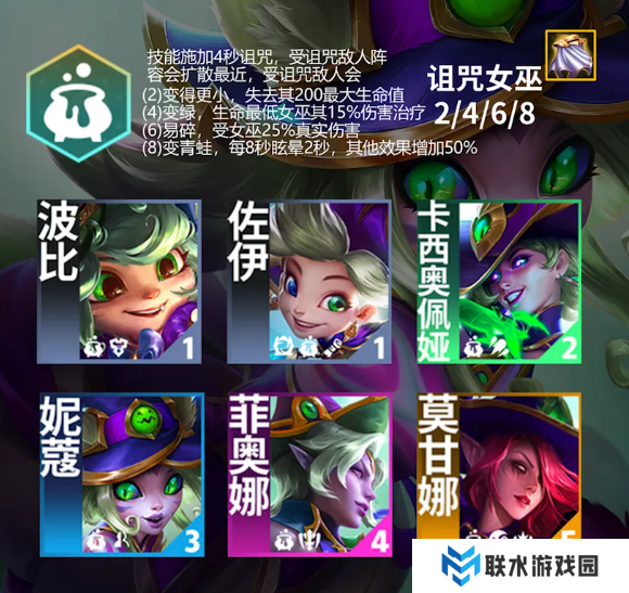 棋子:波比、佐伊、卡西奥佩娅、妮蔻、菲奥娜、莫甘娜
