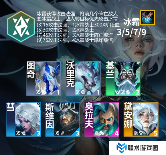 冰霜获得攻击法强,将前几个阵亡敌人变冰看战士,敌人转自标优先攻击冰霜
