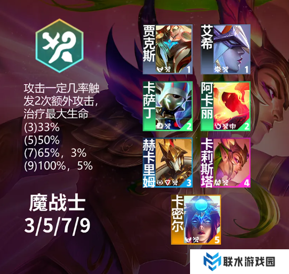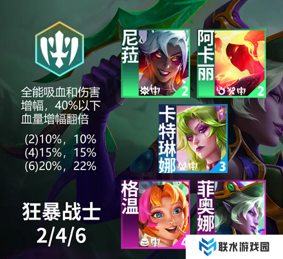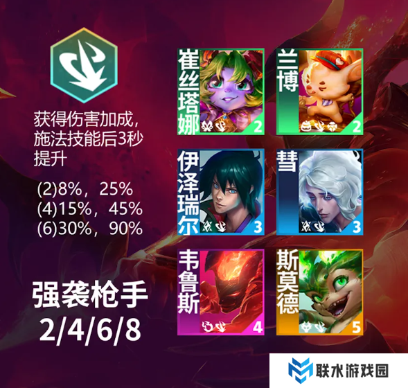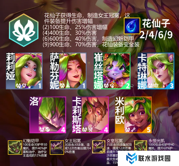 棋子:莉莉娅、萨勒芬妮、崔丝塔娜、卡特琳娜、洛、卡莉斯塔、米利欧
