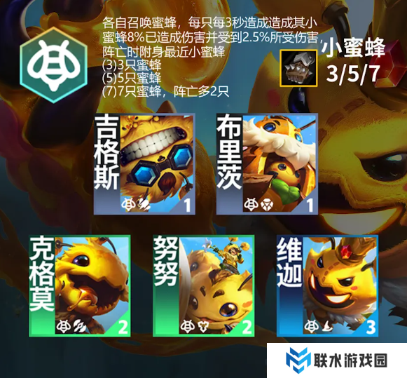 各自召唤蜜蜂,每只每3秒造成造成其小蜜蜂8%已造成伤害并受到2.5%所受伤害阵亡时附身最近小蜜蜂。