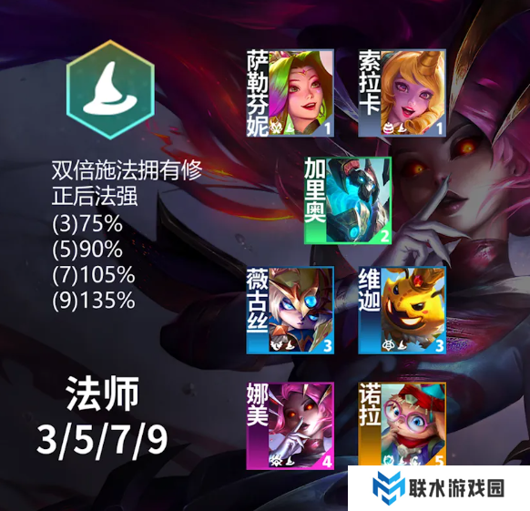 棋子:萨勒芬妮、索拉卡、加里奥、薇古丝、维迦、娜美、诺拉