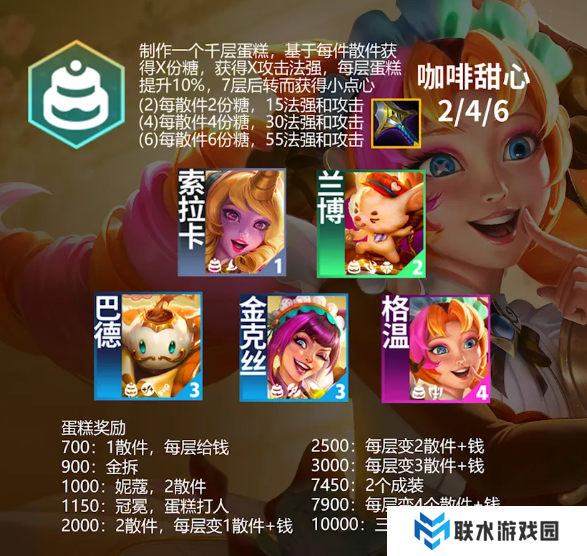 制作一个千层蛋糕,基于每件散件获得X份糖,获得X攻击法强,每层蛋糕提升10%,7层后转而获得小点心