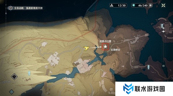 观景点位于北落峡谷,从如图角色所在位置的传送点过去就好。