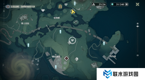 最后一个比较复杂,在觉林峡上边,也就是深坠异想奇境附近,这里有一个大解密。