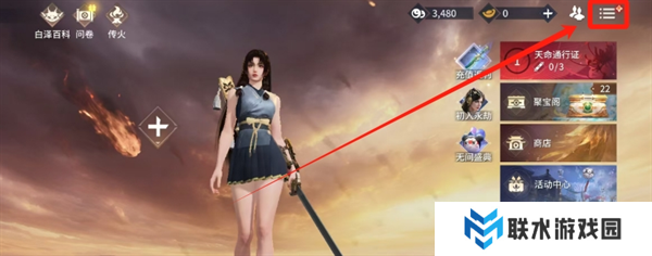 1、进入游戏大厅,在界面的右上角点击【三】三条杠按钮;