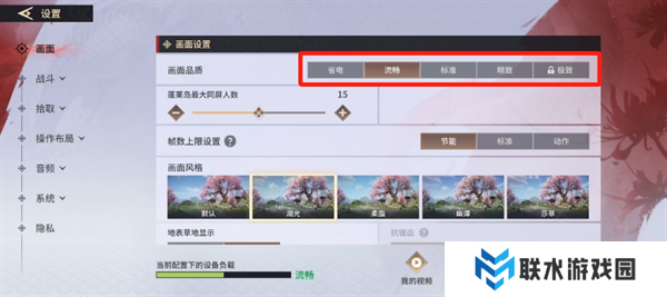 3、在【画面】设置下,调整【画面品质】可以修改游戏画面的模式;