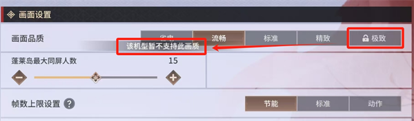 5、如果某个画质无法切换,如下图“极致”模式为锁定状态,说明当前机型不支持该画质。