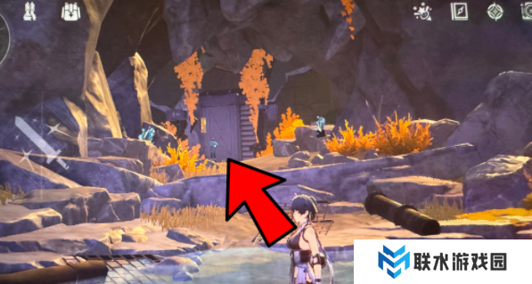 3、等走到尽头之后,往左看就可以看到有山洞石门,门口就是工程师npc,对话就可以接取任务了。