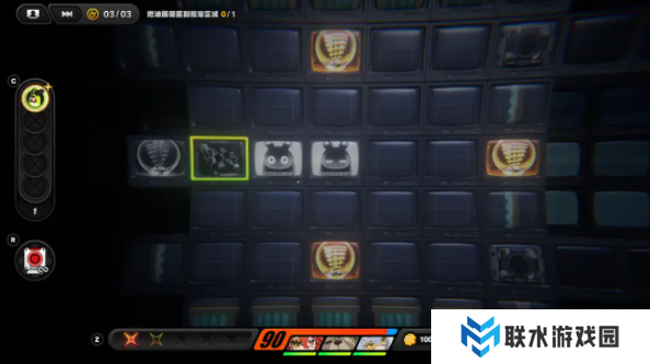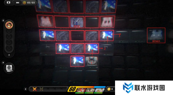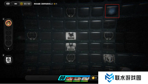 回到十字路口,继续向右侧3号厅探索,进入红外摄象模式,向下方探索移动,过程中注意多个emp影响的范围和释放频率,途中可消灭沿途红色幽灵。
