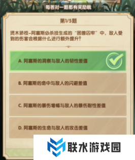 1、贤木骄枝-阿塞斯必杀技生成的“困兽囚牢中,敌人受到的伤害会根据什么进行额外提升?