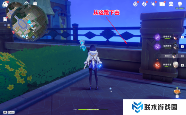 2、按照上方路线,从“星间庭院”的锚点往“城堡中部”的平台走;