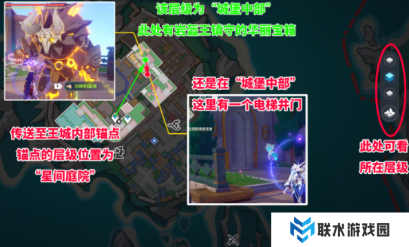 1、玩家要先传送至王城内部锚点,锚点的层级位置为业“星间庭院”;