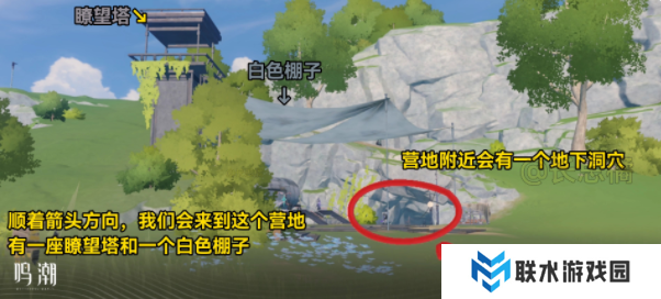 1、在归墟港市中枢信标,顺着箭头,也就是北偏东一点方向,找到这个小营地,进入这个地下洞穴;