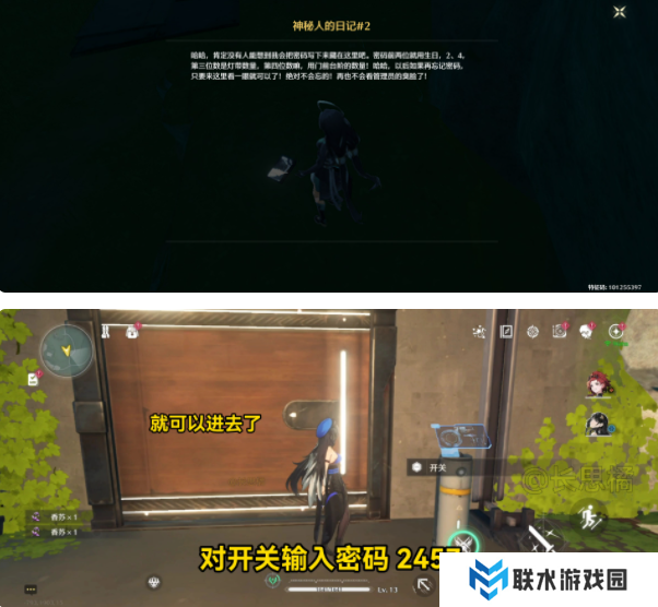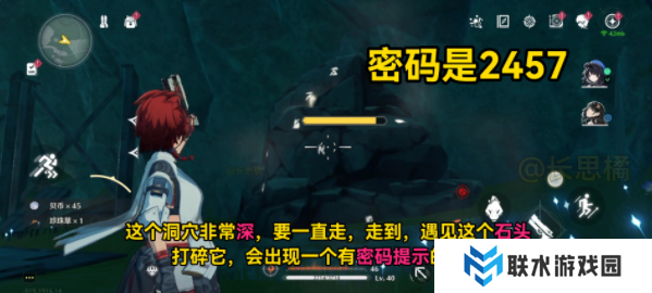 2、这个地下洞穴非常非常深,走到这个大石头这,摧毁这个石头就可以看到一个信息触板,它会提示密码,2 4;