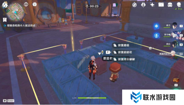 5、在“第3个木箱前”,选择“放置甜甜花”