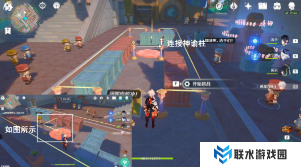 2、“开始挑战”后,如图所示连接神谕柱,原地等待即可。