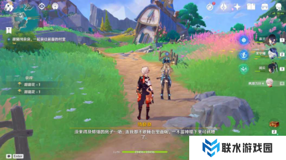 2、然后跟随绮良良,一起前往前面的村里,过程中需要对话2分钟;