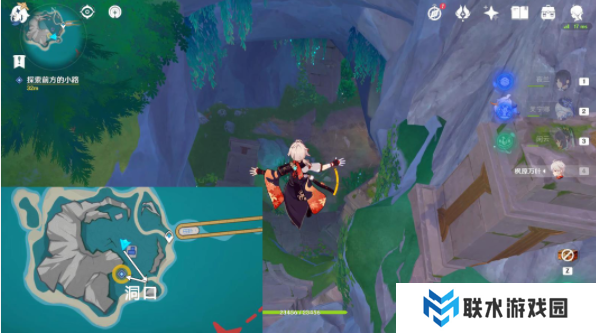 3、之后跟随指引往地图的东南方向走,探索前方的小路,前往洞口位置;