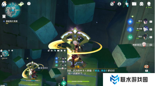 7、对话后会出现敌人,玩家击败丘丘人与史莱姆后,再次与积木小人对话2分钟;