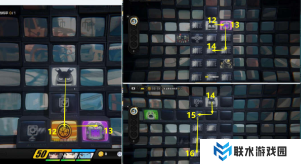7、接着去12-13区域,然后按照下图路线走去14-16区域,这样走时因为要躲炸弹;
