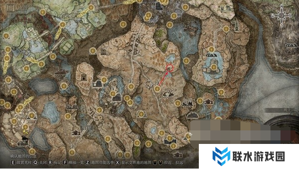 1、玩家从赐福【穆斯废墟】出发,往右上角水池处的洞穴走。