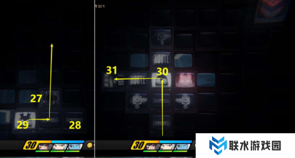 9、接着从29区域向上移动5格到30区域后去31区域,31区域会将我们弹到上面32区域;