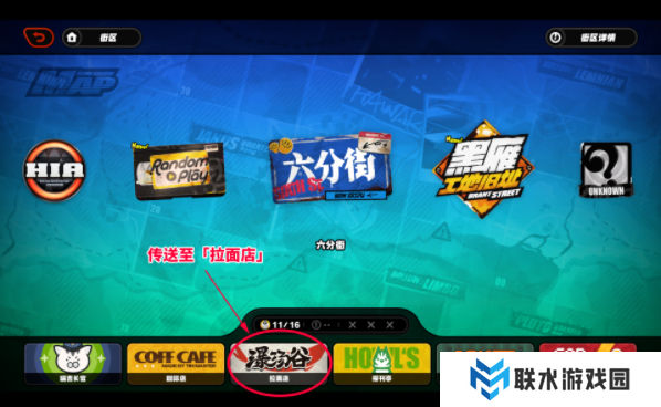 1、首先打开地图(快捷键“M”),传送至「六分街」的「拉面店」;