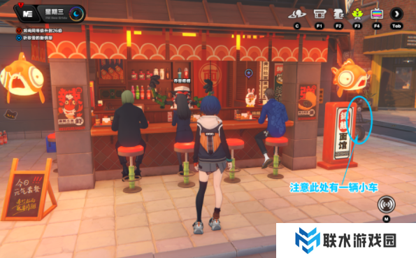 3、之后玩家要来到小车旁,可以看到小车后有「寻宝邦布」;