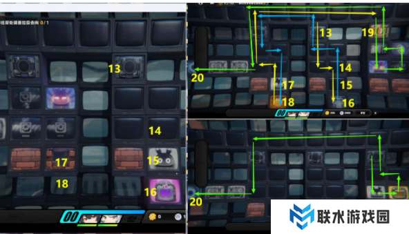 6、进去13房间后转一圈,其中15区域需要在14区域多撞几次后,就可以下到15区域,16区域是隐藏区域,当下到15区域后,16区域宝箱会显示出来,然后去18区域,18区域和16区域一样,最后再去19房间转一圈后,去20区域传送;