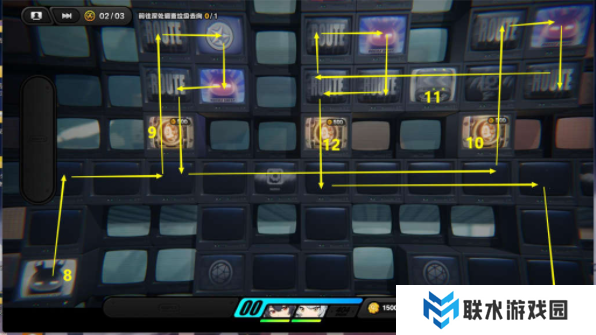 4、接着先去9房间里转一圈,再去10房间里转一圈后,从11传送带进去12房间,然后从12房间出去后,去下面(这样走不用花钱开12门);
