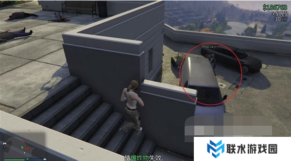 9、下楼梯的时候先往左看,此处有大量的敌人与车辆,直接从楼梯处往左扔一个手榴弹就能将大批敌人一锅端掉。
