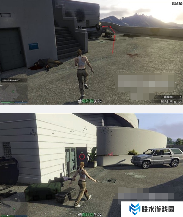 10、完事下楼梯往右走,第二个爆炸物就在右侧的墙上。