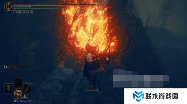 5、可以骑马投掷,当燃炉魔像的头在悬崖正下方时投掷,命中后会对燃炉魔像造成巨大伤害,使其倒地,多扔几个大燃炉壶就能将其击败。如果只有一个大龟裂壶,就只能做一个大燃炉壶,丢完一个之后需要跑远点脱战制作再跑回来继续丢,燃炉魔像脱战不回血。
