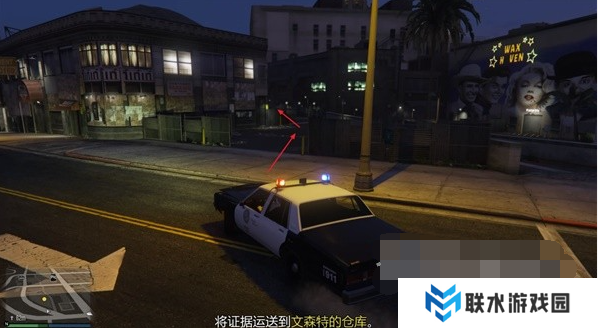 1、驾驶警车来到街道触发任务之后,驾驶警车跟随地图指引前往摩宁坞的一处藏身点。