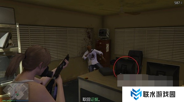 4、在最里面的房间可以找到一台电脑,走到电脑面前与其互动,复制证据离开这个建筑。