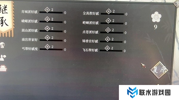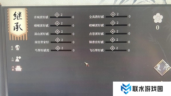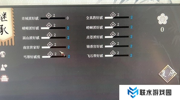 1、在二周目中,门派好感度是可以在0点数情况下点出1点,变成2好感;