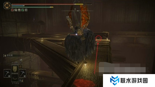 7、然后爬左边的梯子往上走,上面楼梯口前方有一个火焰骑士需要注意,然后沿着右侧的楼梯继续往上爬。
