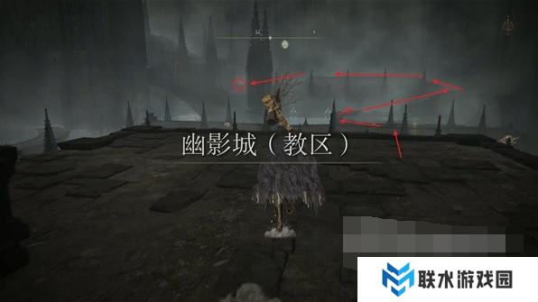1、从教堂出发沿着下图所示路线一直走到【幽影城教区】。