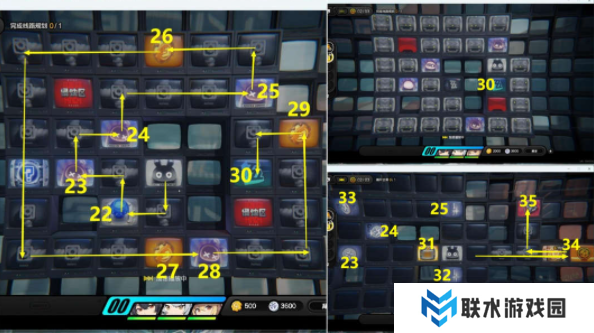 7、接着按下图顺序依次去22-30区域,然后再去拿了23-25区域和31-34区域奖励,最后再去35区域打完boss后,该【剧情委托】结束,全程按照我攻略路线走的话,最后即可获得隐藏成就《杯水不洒》。