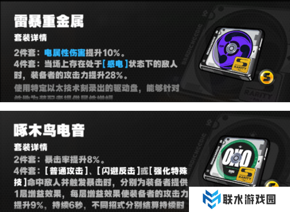 雷暴重金属+啄木鸟电音二件套(电属性伤害伤害加成,暴击率加成)