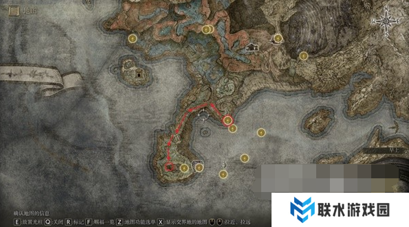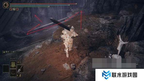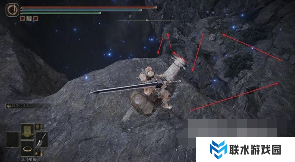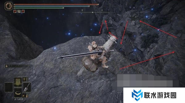 5、然后从第二个赐福继续往右边走,按照下图路线走到尽头处的悬崖。