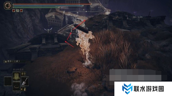 7、从赐福【大洞的十字记号】开始往左前方走,沿着前方破败的废墟一直走即可到达下一个赐福的位置,没啥容易迷路的点。