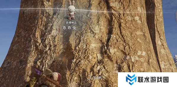2、找到之后,拿电锯或者斧头砍伐树木,就可以掉落物品,多砍几下就可以拿到乖乖兔;