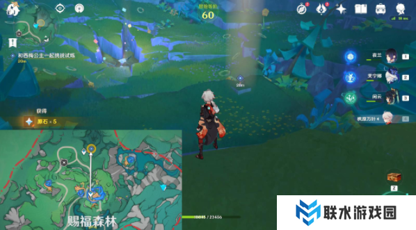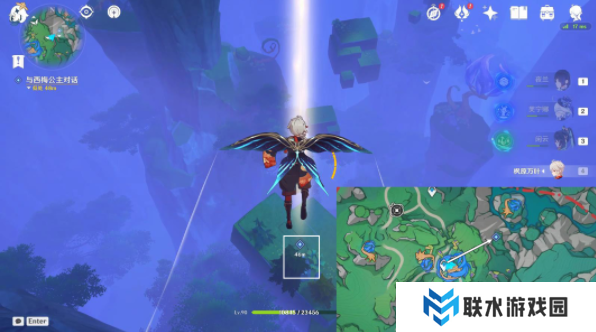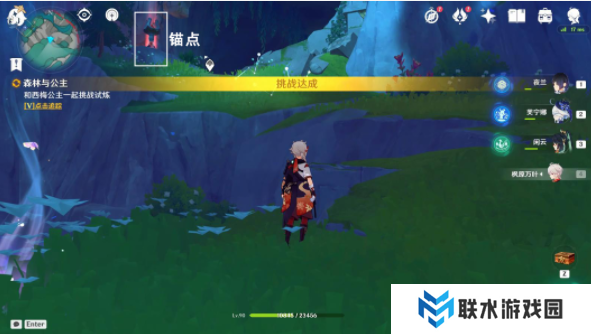 4、传送赐福森林北方向锚点,往地图的北方向飞,开启锚点,再次和西梅公主一起挑战试炼: