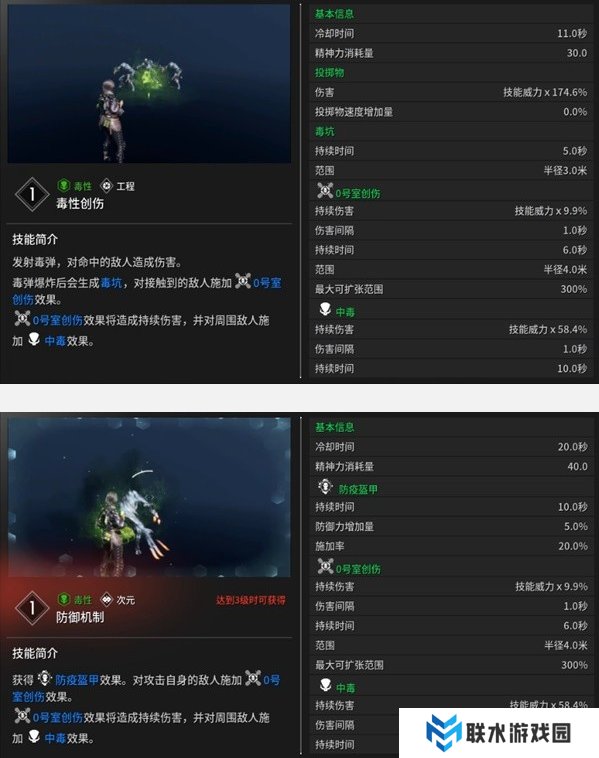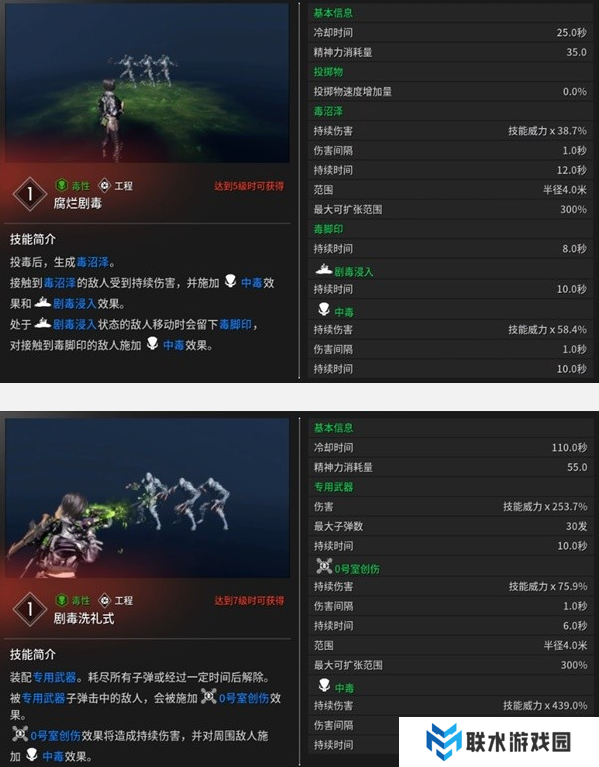 ①毒性创伤(工程):投出毒,对被击中的敌人造成伤害并对周围的敌人施加0号室创伤。