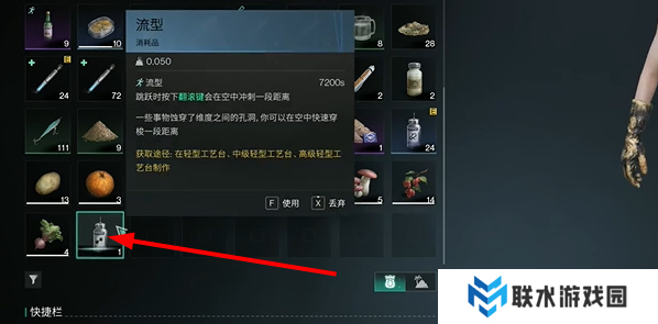 4、这个蜗牛会产生【流型】的材料,可以在工作台位置来进行制作道具。